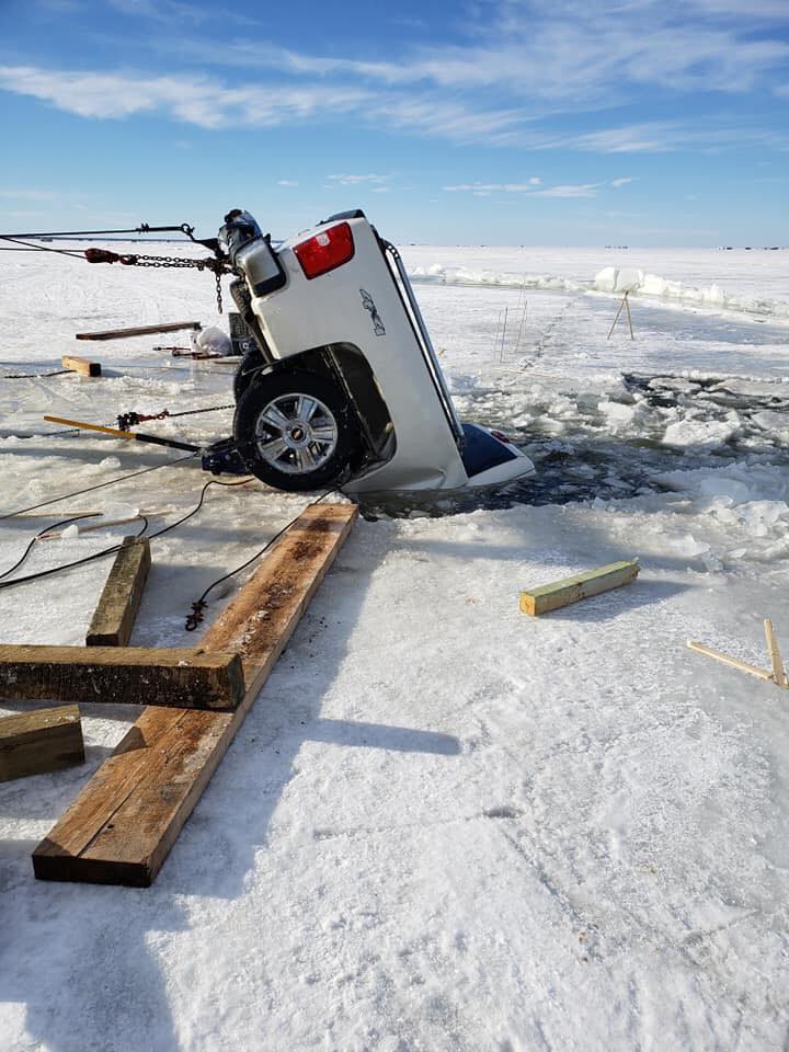 @tylerprebeck Heres pt2 of the f350 that thought it could swim. Shoutout to Ellis Towing, Recovery & Ice Rescue out of Cass Lake & bemidji, MN for the safe recovery of the truck. @TikTok no one was harmed in the making of this video #ford #f350 #fishing #ice #lakewinnie #underwater #recovery #recoveryteam #pickup #truck #brokethrough ♬ Canadian Hot in Here - OGR-Scintilla