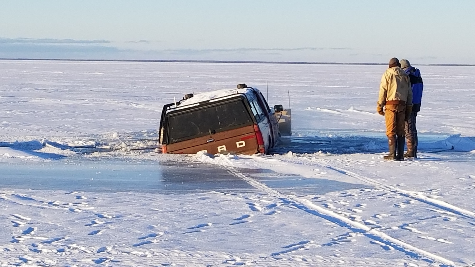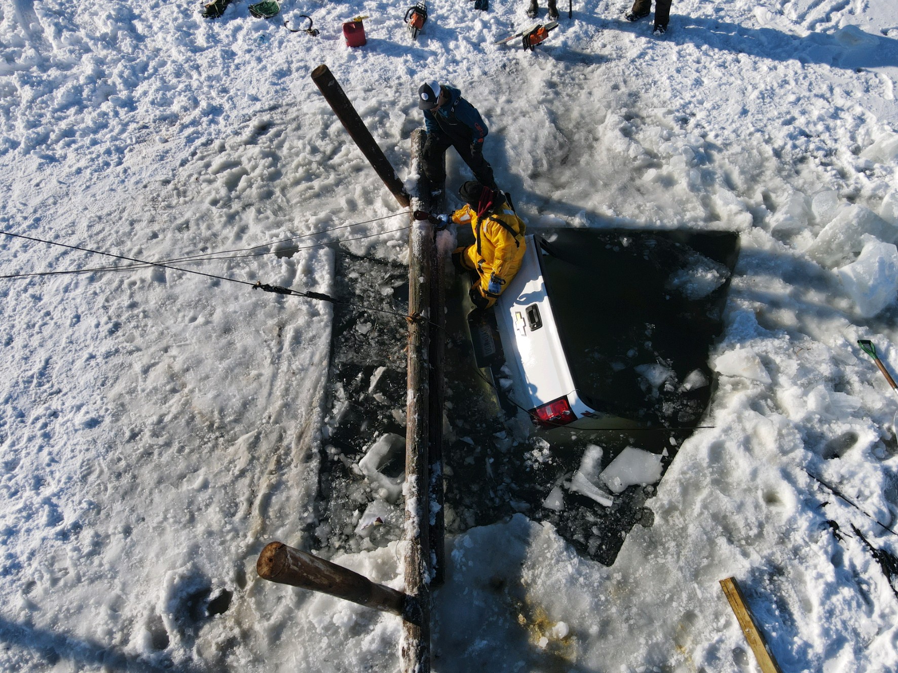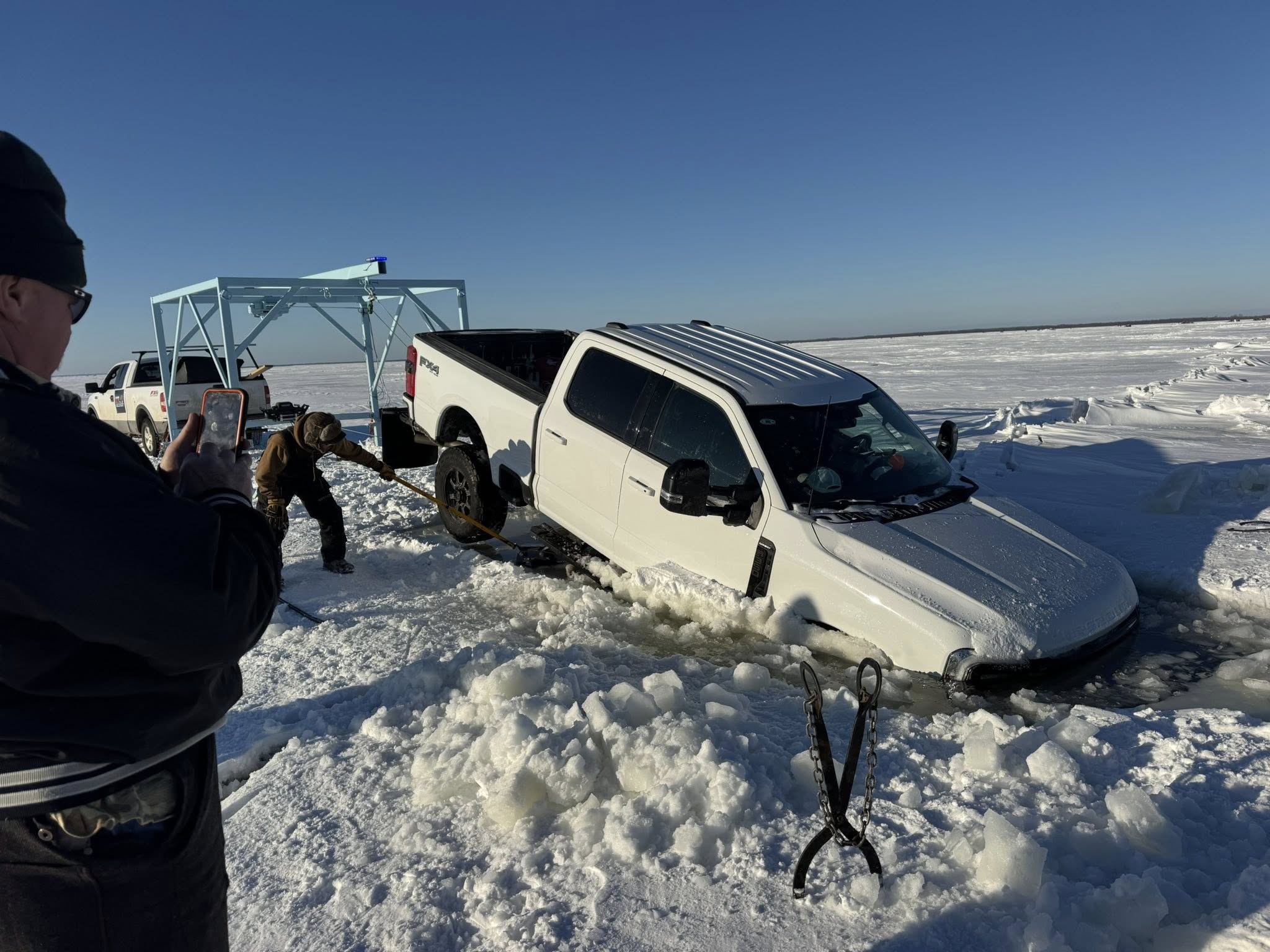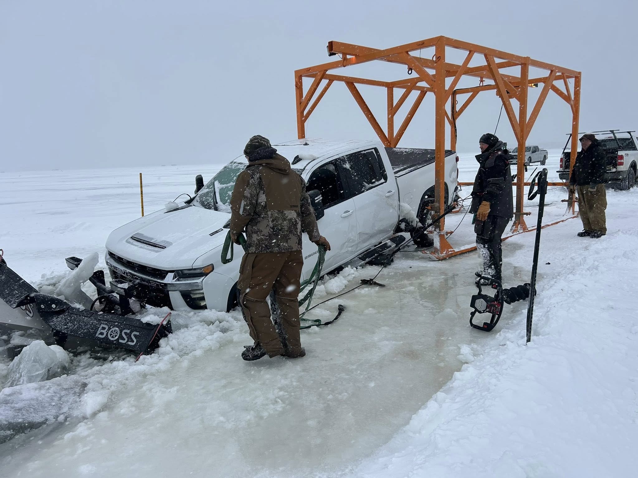 One-ton, heavy-duty pickup truck successfully extracted from Red Lake in northern Minnesota.